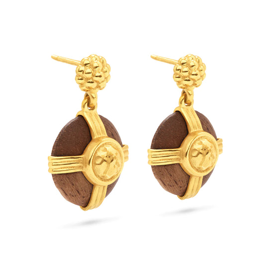 Capucine de Wulf Gaia Round Drop Earrings- Hammered Gold/Teak