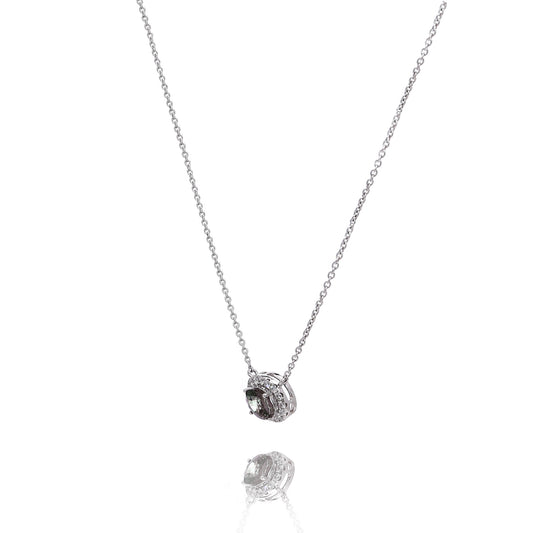 14k White Gold Princess Cut Alexandrite and Round Diamond Halo Pendant Necklace