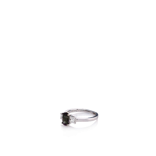 • 18k White Gold 1.17ct Oval Alexandrite and Diamond Three Stone Ring