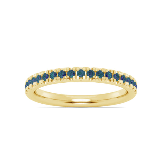 • 14k Yellow Gold Alternating Round Alexandrite and Diamond Band