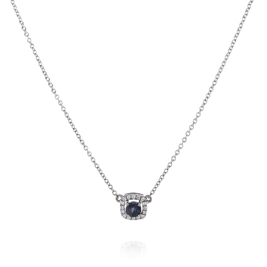 14k White Gold 18" Round Alexandrite and Diamond Halo Pendant Necklace