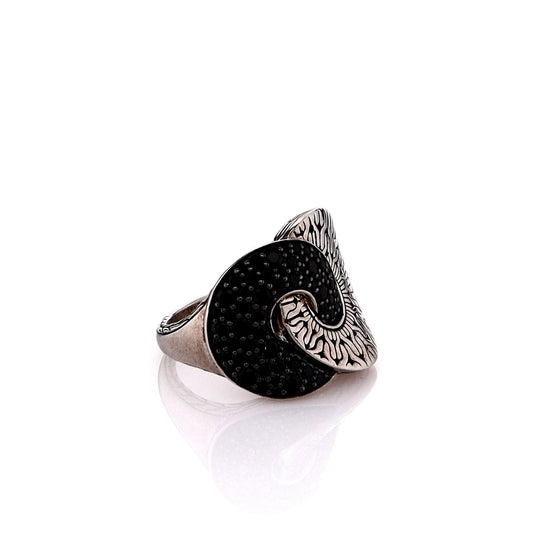John Hardy Sterling Silver Classic Hammered Black Sapphire and Spinel Ring