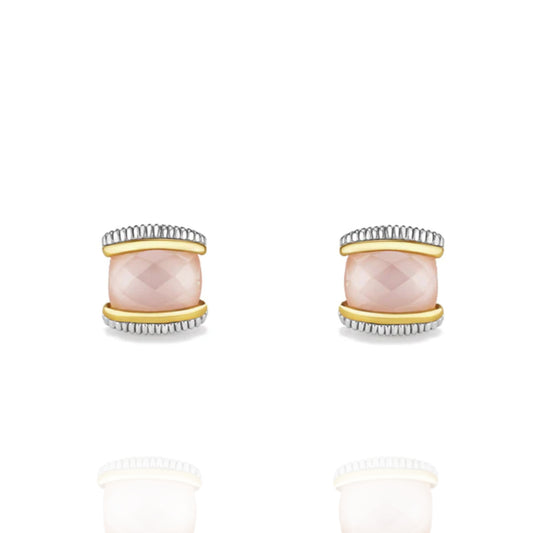 Judith Ripka Eternity Stud Earrings with Stones - Rose Quartz, Mother Of Pearl