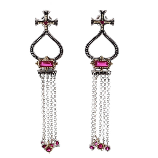 Konstantino Dome Corundum Tassle Earrings