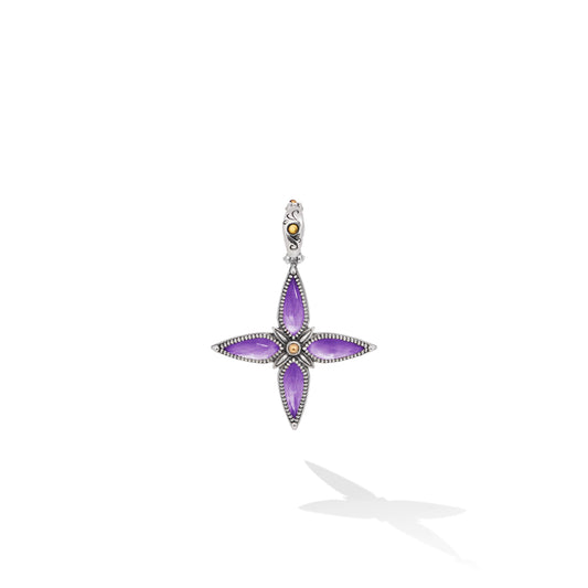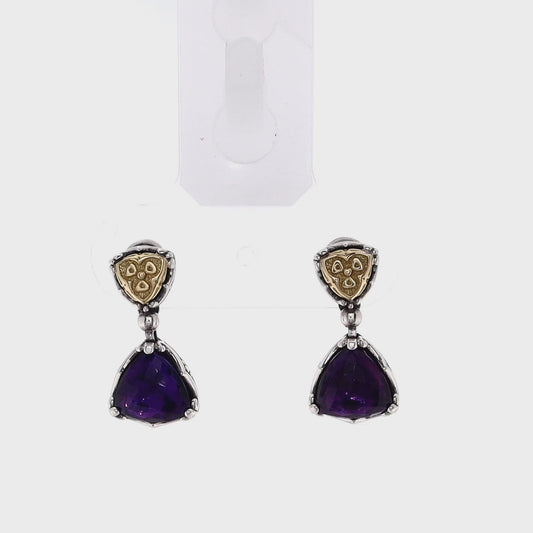 Konstantino Two Tone Anthos Prism Leaf Design Amethyst Dangle Earrings