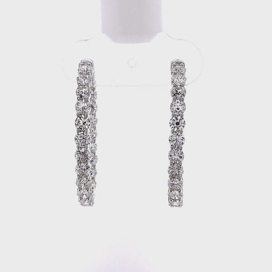 14k White Gold 13.26ct In and Out Oval Diamond Hoop Earrings