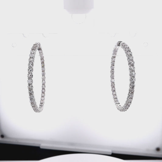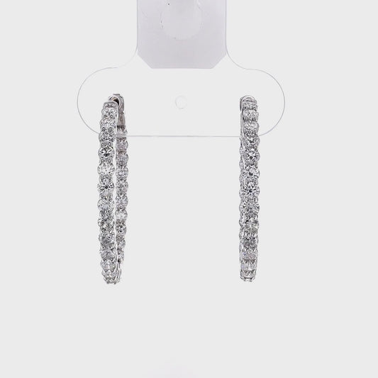 14k White Gold 5.00ct In and Out Oval Diamond Hoop Earrings