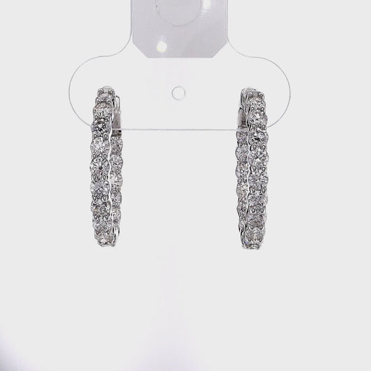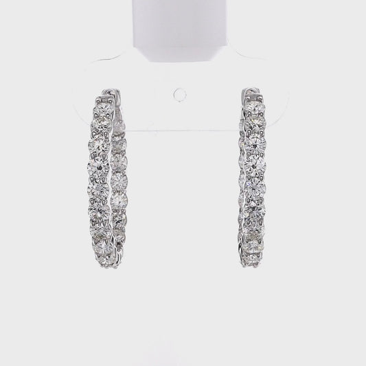 14k White Gold 7.12ct In and Out Round Diamond Hoop Earrings