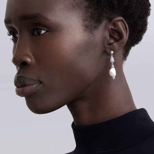 Honora Sterling Silver Double Chain Baroque Pearl Drop Earrings