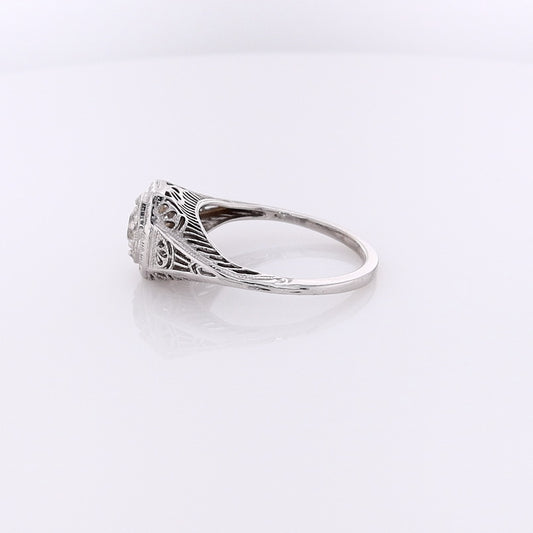 Estate 18 Karat White Gold Filagree and Milgrain Diamond Ring