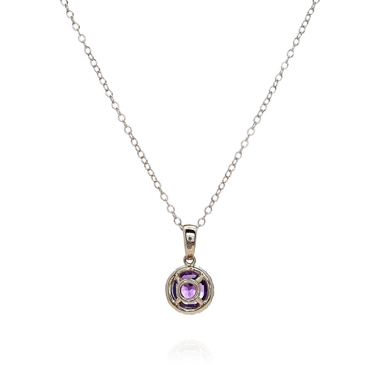 14k Yellow Gold Round Amethyst and Diamond Halo Pendant Necklace