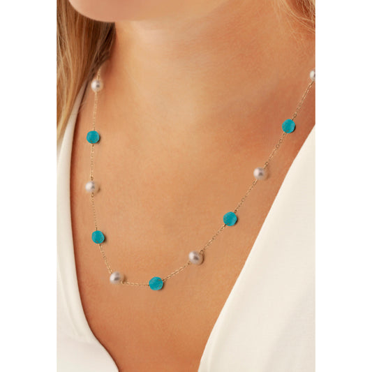 14k Gold Freshwater Pearl and Turquoise Necklace