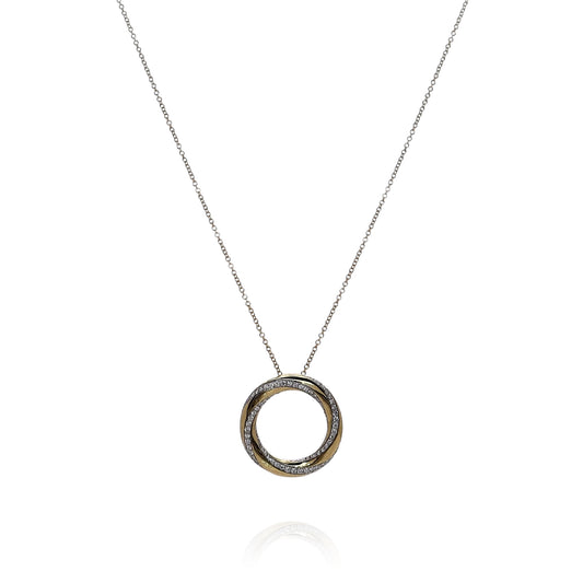 Simon G. 18k Yellow Gold Open Circle Twist Diamond Pendant Necklace