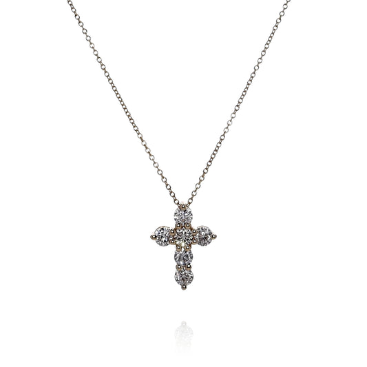 14k Yellow Gold Diamond Cross Pendant Necklace