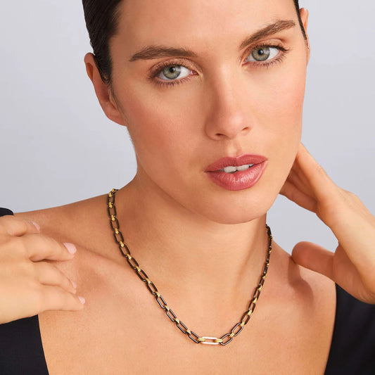 Lagos Signature Caviar 18k Gold & Black Ceramic Diamond Station Link Necklace, 6mm