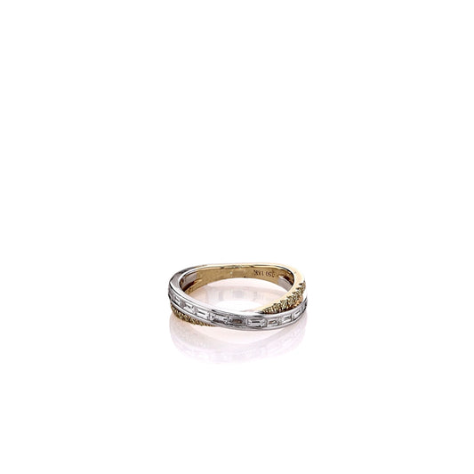 18k Two-Tone Yellow and White Diamond Crossover Band