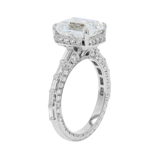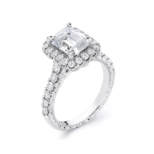 Jack Kelége Platinum Emerald Cut Diamond Halo Engagement Ring