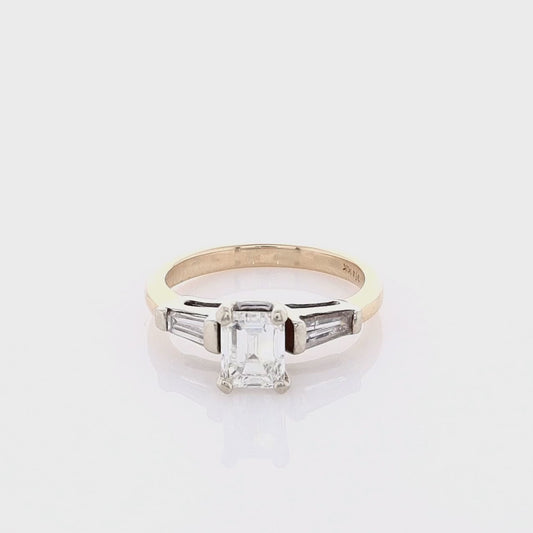 • Estate 14k Two-Tone 0.72ct Emerald Cut Three Stone Engagement Ring