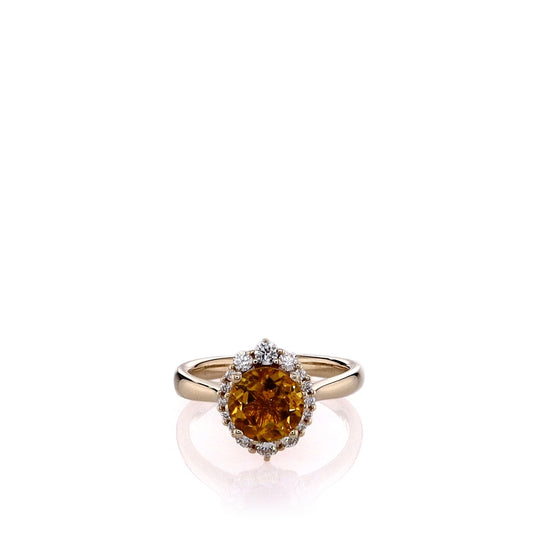 14k Yellow Gold Round Citrine and Diamond Halo Ring