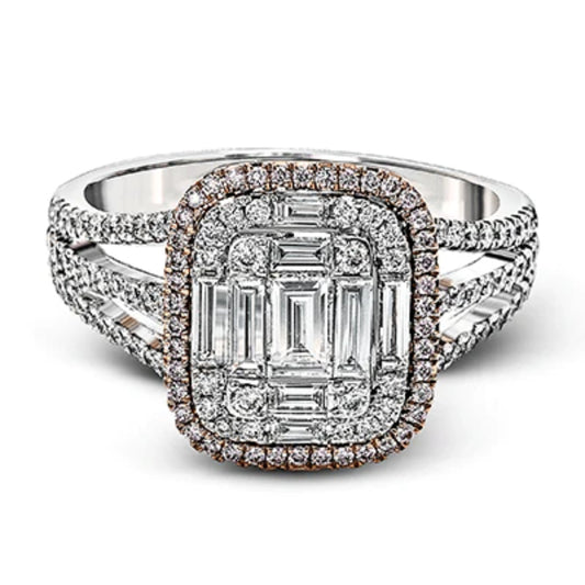 Estate Simon G 18Karat Rose and White Gold Curved Double Row Diamond Wedding Band