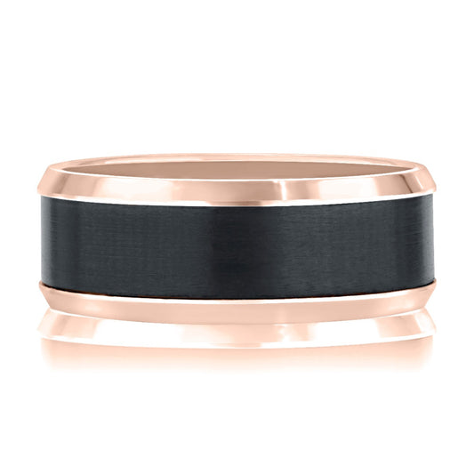 A. Jaffe Black Zirconium & 14k Rose Gold Satin Band with Beveled Edges