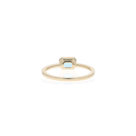 14k Gold Bezel-Set Emerald Cut Blue Topaz Ring