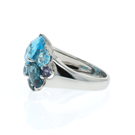 • 14k Gold Multi-Color Blue Topaz, Iolite and Diamond Cocktail Ring
