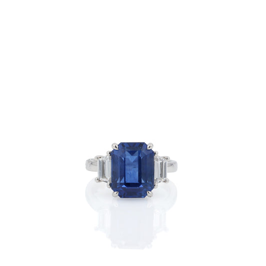 Platinum 7.96ct Emerald Cut Sapphire and Diamond Engagement Ring