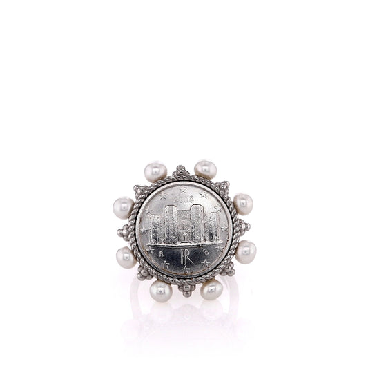 Honora Sterling Silver Coin Design Center and Button Pearl Ring