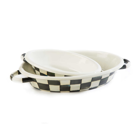 MacKenzie-Childs Courtly Check Enamel Oval Gratin Dish- Medium