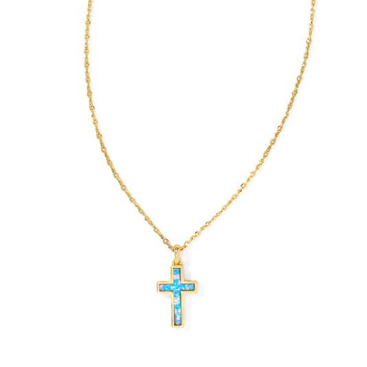 Kendra Scott Cross Gold Pendant Necklace in Kyocera Opal
