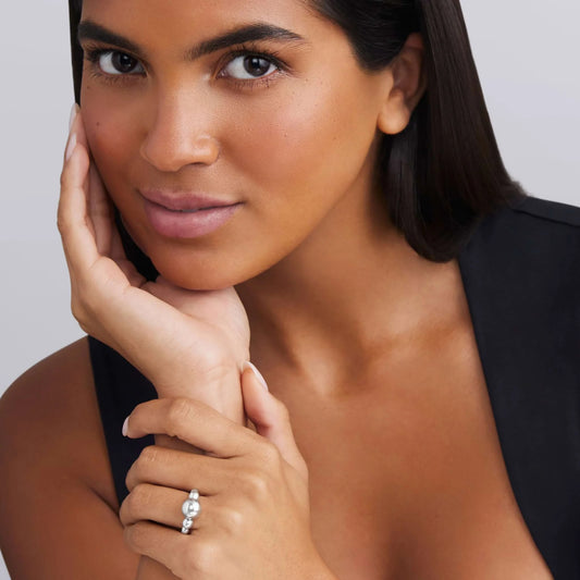 Lagos Caviar Bubbly Silver Beaded Cross Over Ring