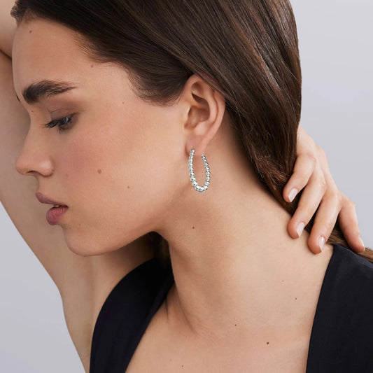 Lagos Caviar Bubbly Silver Oval Beaded Hoop Earrings