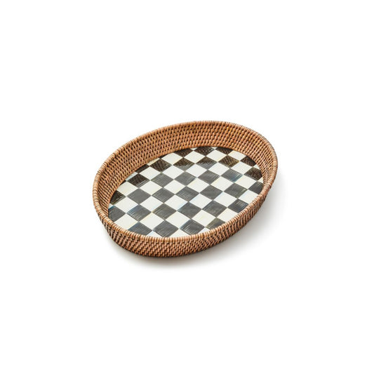 MacKenzie-Childs Courtly Check Enamel & Rattan Serving Tray - Spring 2025