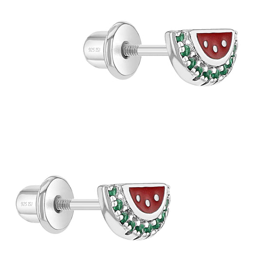Children's Sterling Silver CZ & Enamel Watermelon Stud Earrings
