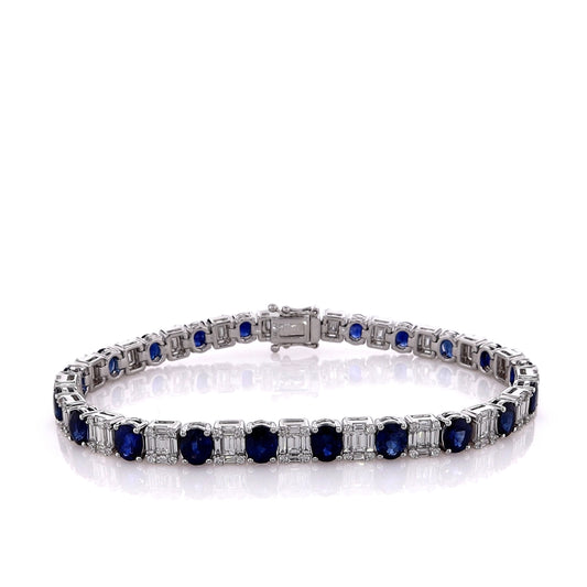 14k White Gold 7" Alternating Oval Sapphire and Diamond Bracelet
