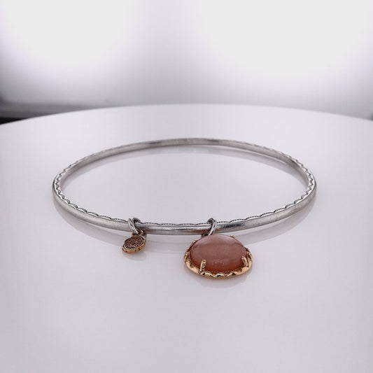 Estate Tacori Sterling Silver Peach Moonstone Charm Bangle Bracelet
