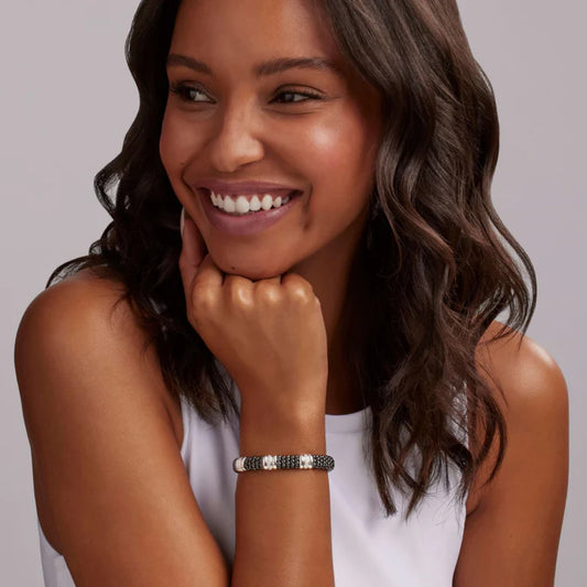 Lagos Two-Tone Interlocking Diamond Caviar Bracelet, 6mm
