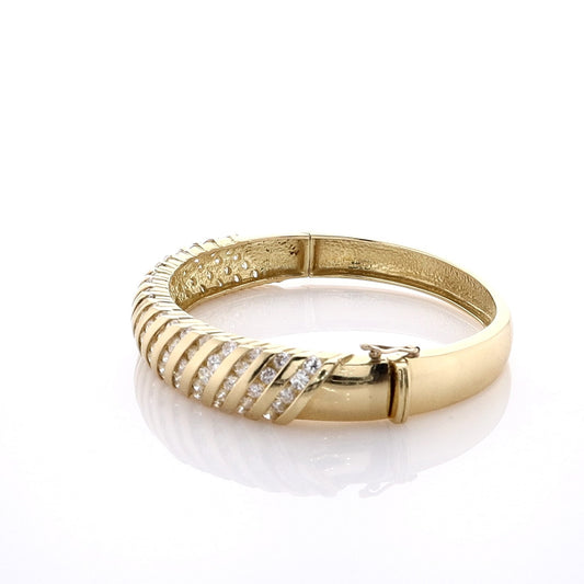 Estate 18K Yellow Gold Channel Set Diamond Hinged Bangle Bracelet