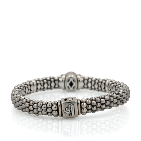 Estate Lagos Two-Tone Caviar Oval Pave Diamond Center Bracelet