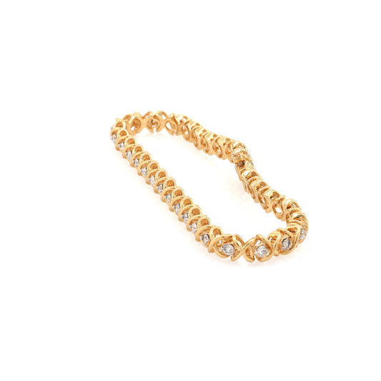 Estate 14 Karat Yellow Gold Alternating Diamond and 'X' Design Link Bracelet