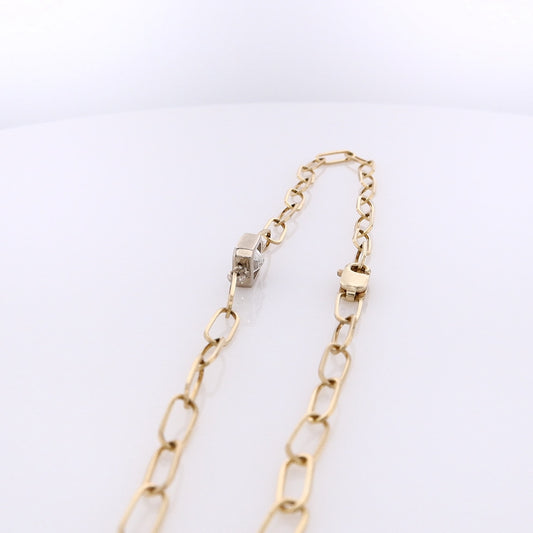 Estate 14 Karat Two-Tone Gold Diamond Paper Clip Link Bracelet