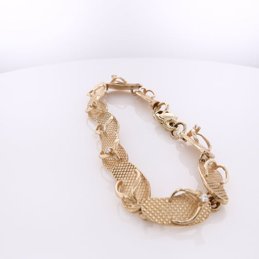 Estate 14 Karat Yellow Gold Flip Flop Design Diamond Bracelet