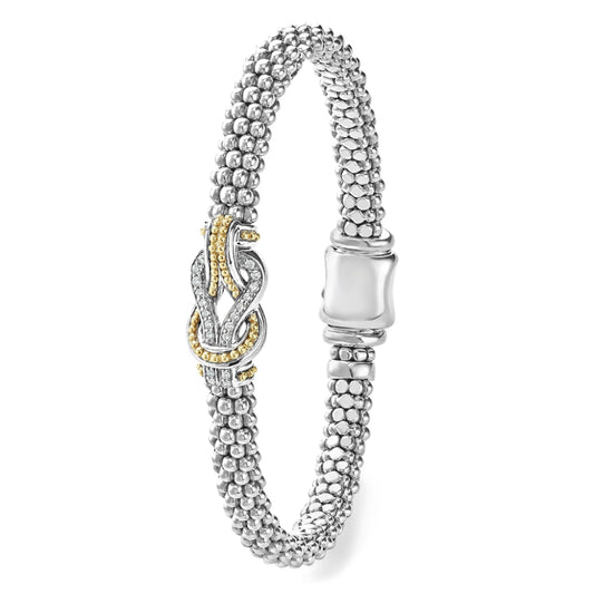 Lagos Two-Tone Knot Diamond Caviar Bracelet 6mm