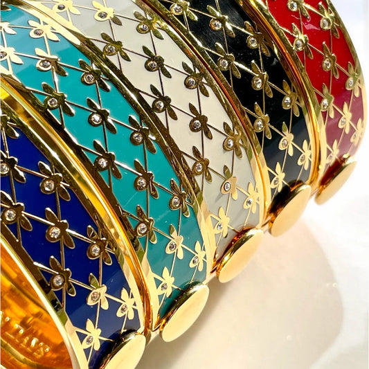 Halcyon Days 1cm Agama Gold Hinged Enamel Bangle
