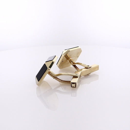 Estate 14 Karat Yellow Gold Onyx Border Cufflinks