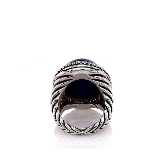 Estate David Yurman Sterling Silver Signature Oval Lapis and Diamond Split Shank Ring