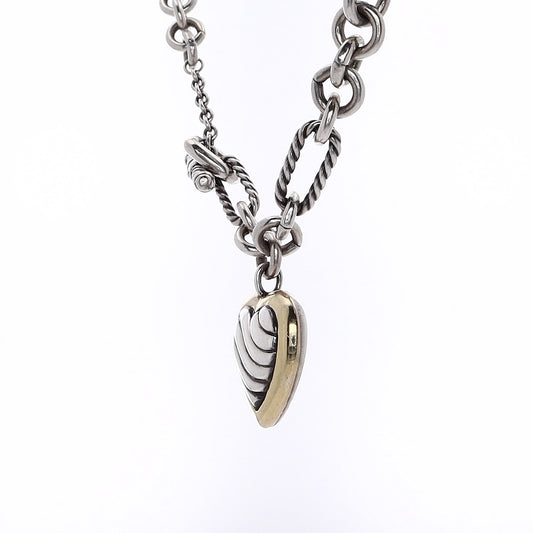 Estate David Yurman Sterling Silver and 18 Karat Yellow Gold Polished Round and Oval Cable Link Necklace