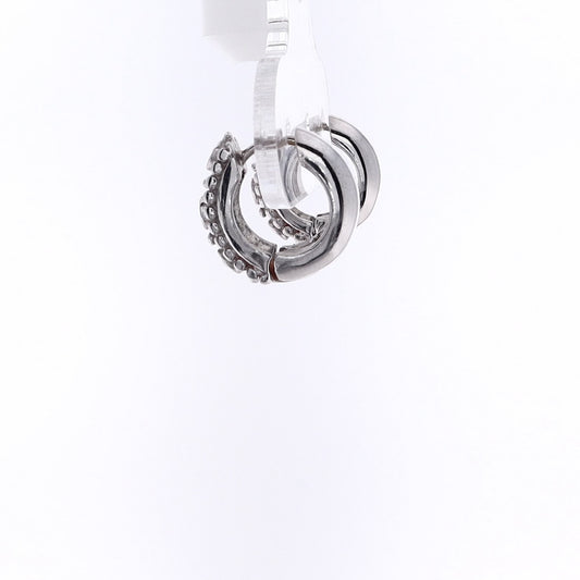 Estate 14 Karat White Gold Diamond Huggie Hoop Earrings