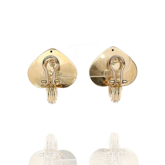 Estate 18k Yellow Gold Ribbed Spade Design Pierced/Clip-On Earrings